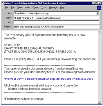 Email notifications to investors contain information about the offering document along with an Internet link within the email message.
